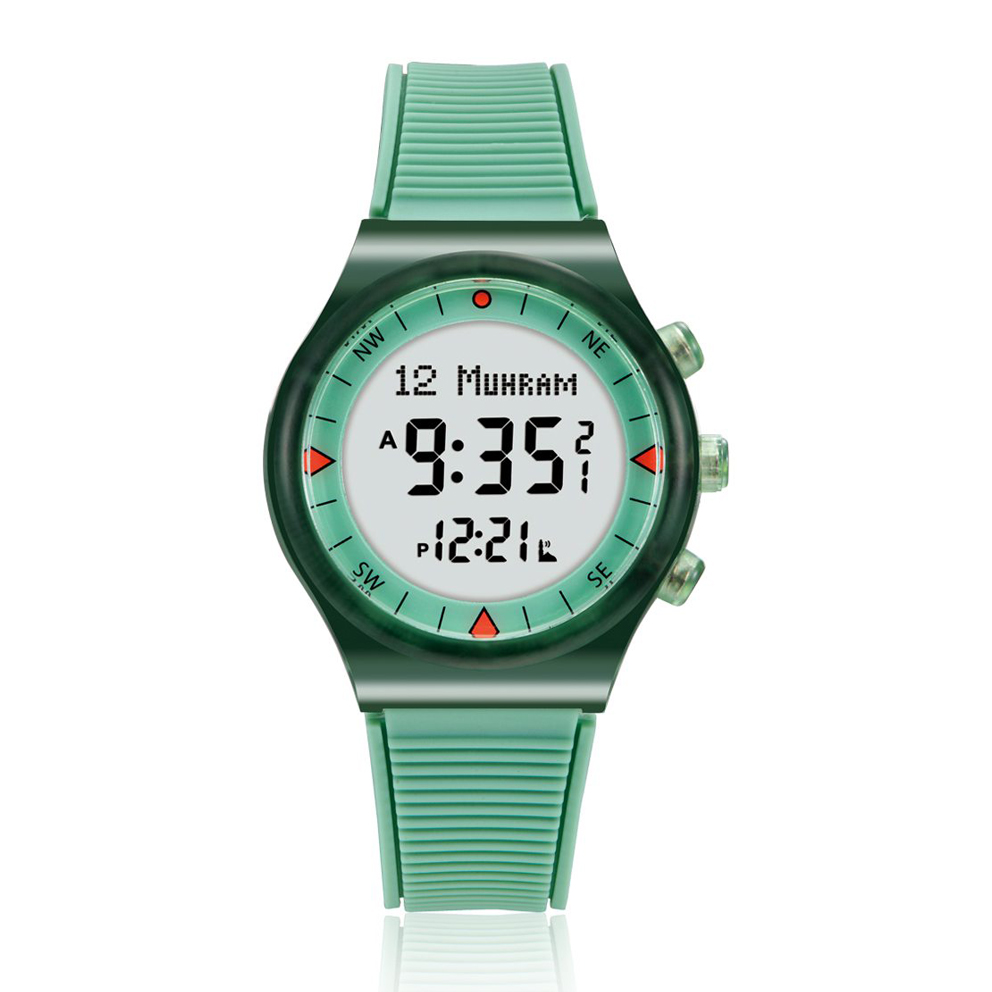 Includes a visual user manual for Al-Harameen Islamic watches