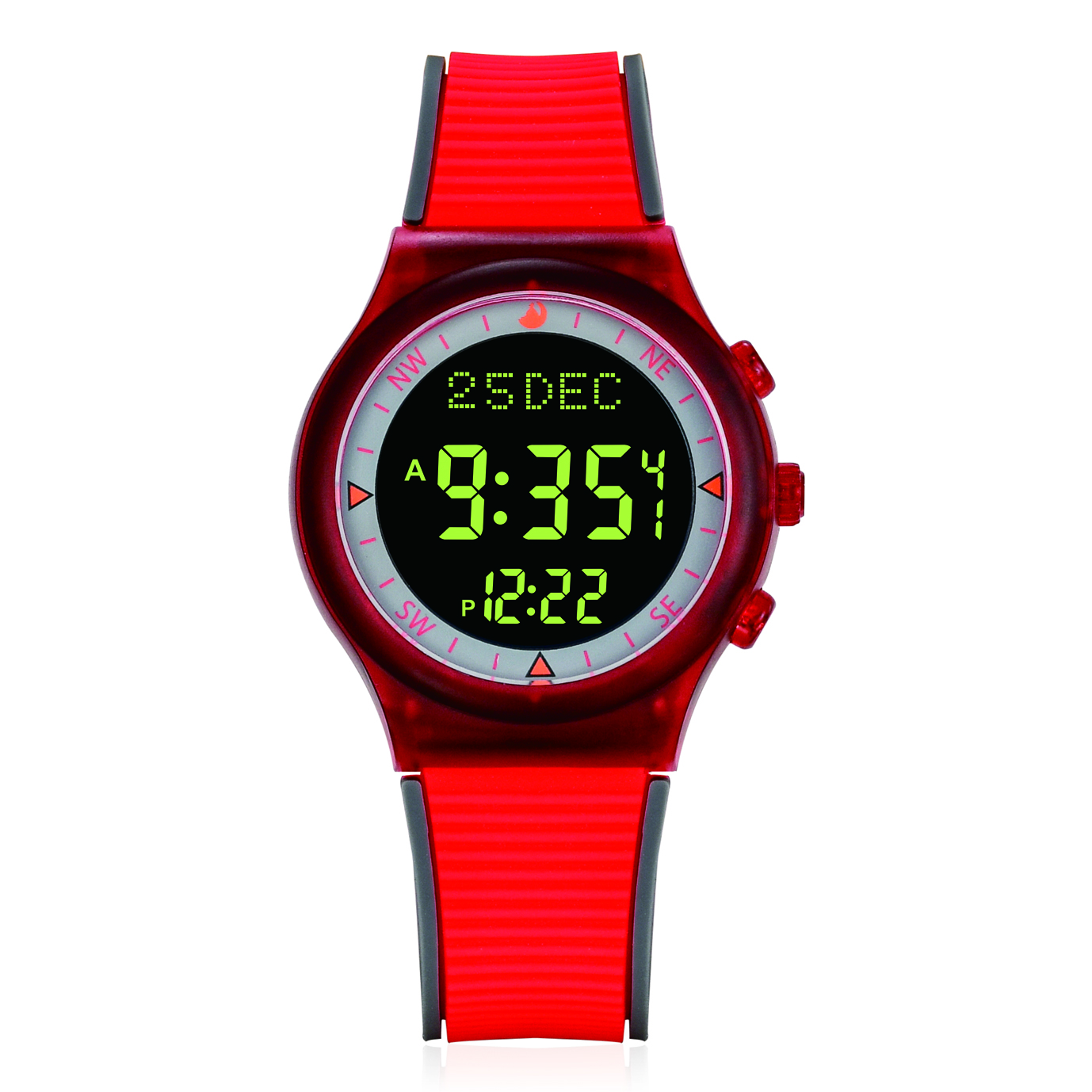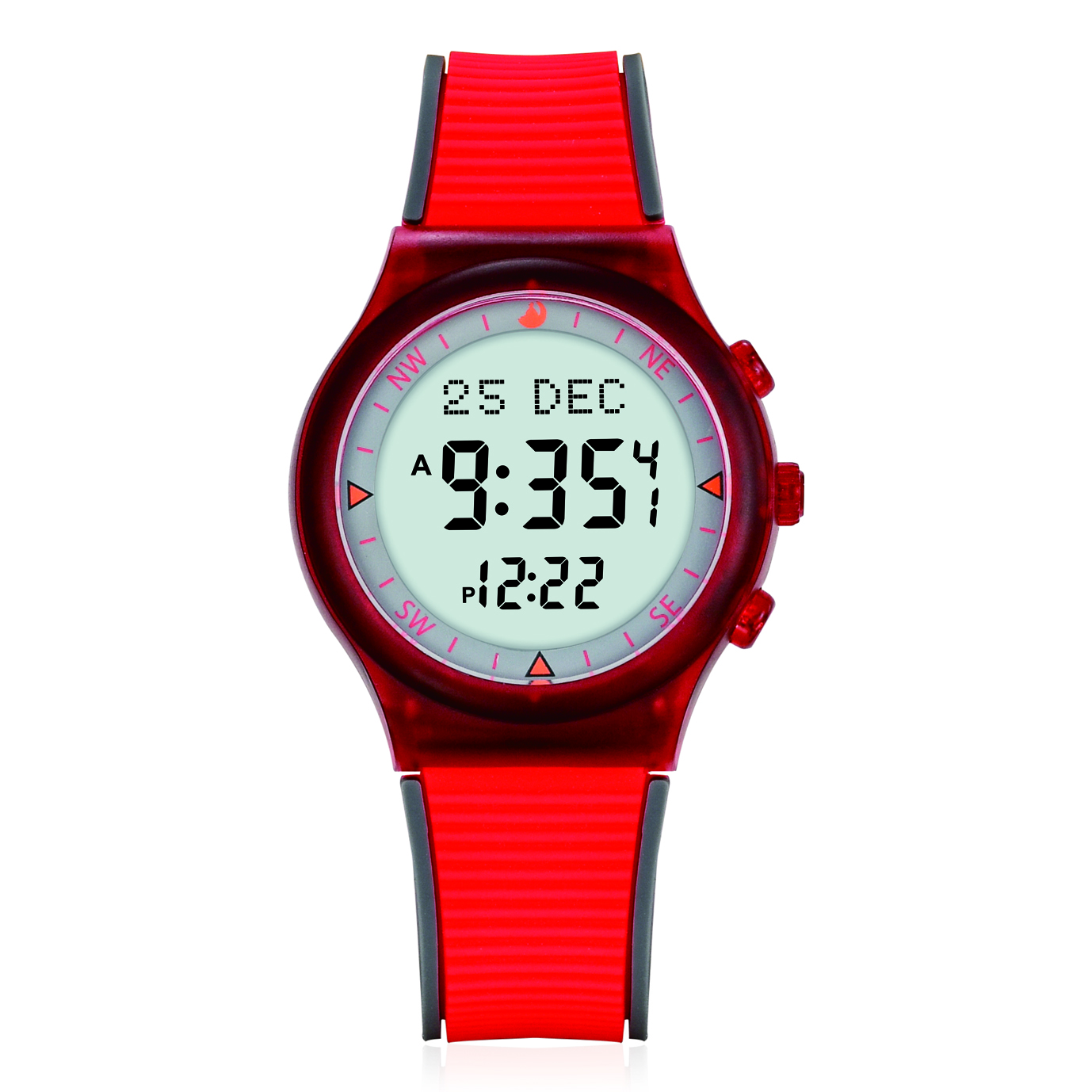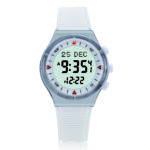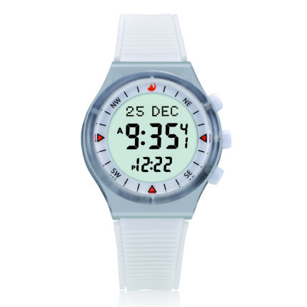 Round plastic case with a high-quality rubber strap