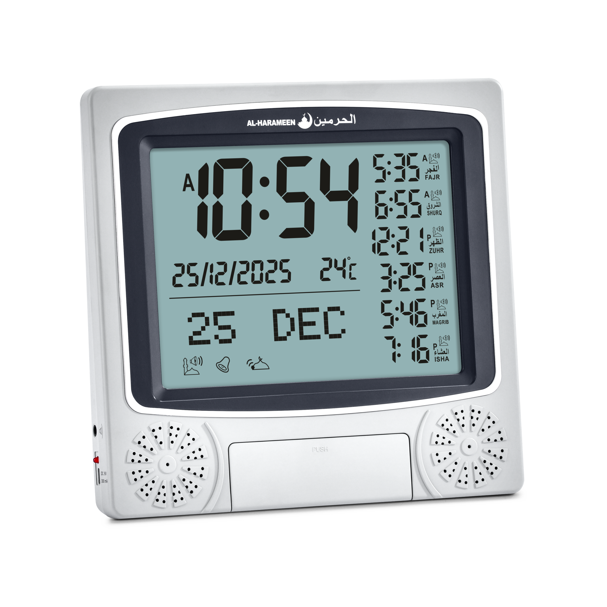 Harameen Dual-Language Clock for Home, Office, Halls, and Mosques – Model: HA.4010