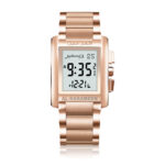 Luxury stainless steel case and strap – rust-resistant with shiny gold and silver finishes