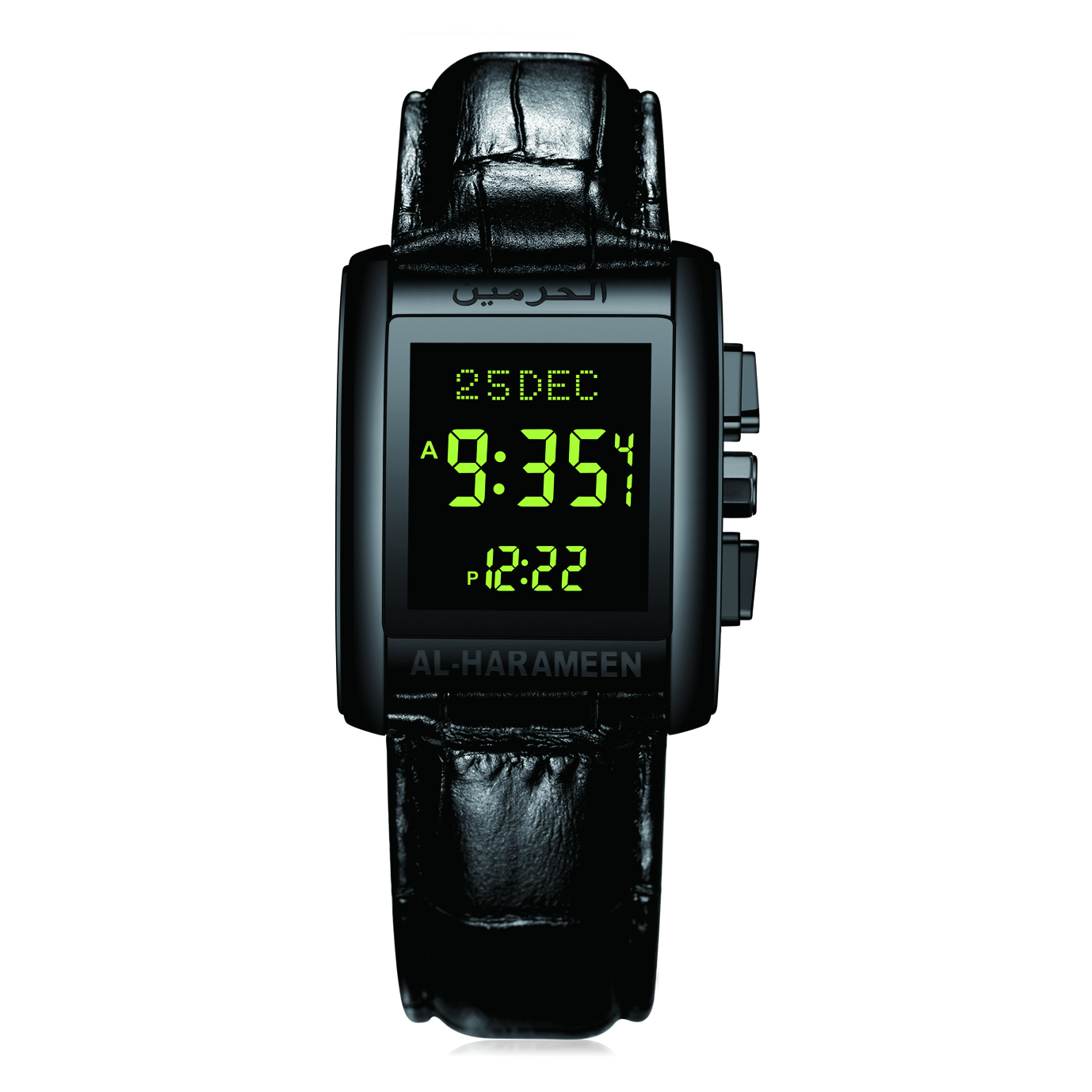 Built-in electronic Qibla compass – find the direction of Qibla from anywhere at the press of a button
