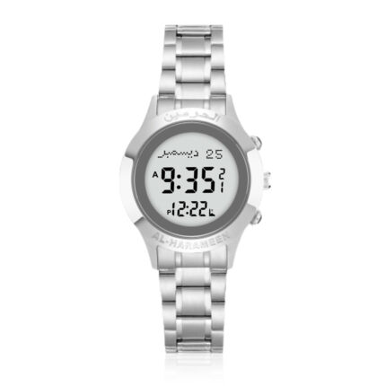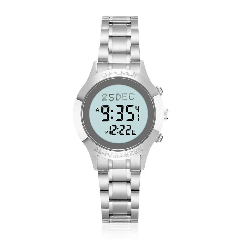 Built-in Electronic Compass – Displays Qibla direction based on city selection, at the press of a button