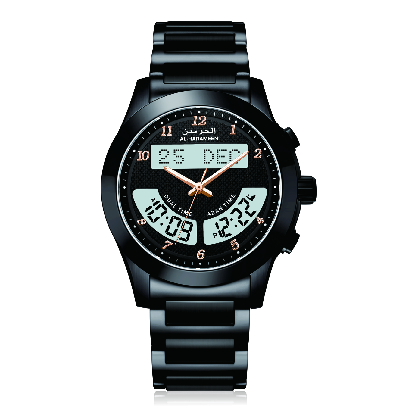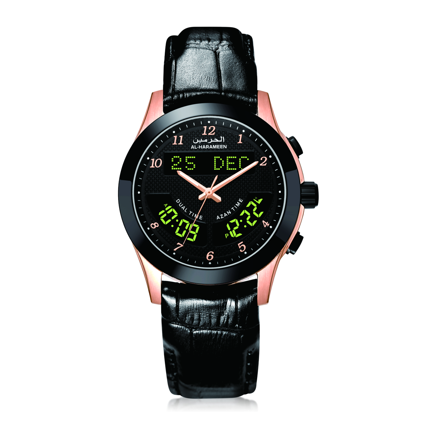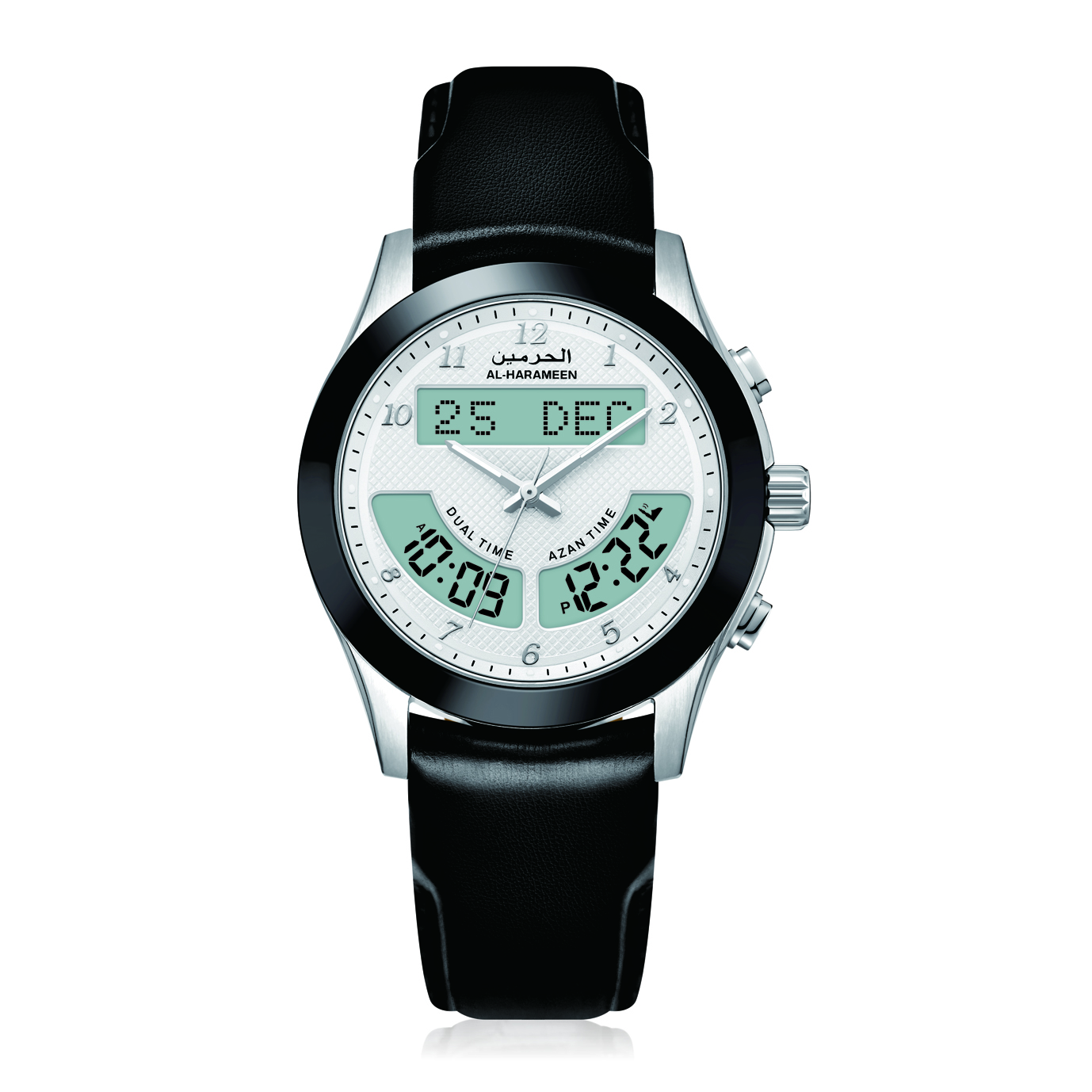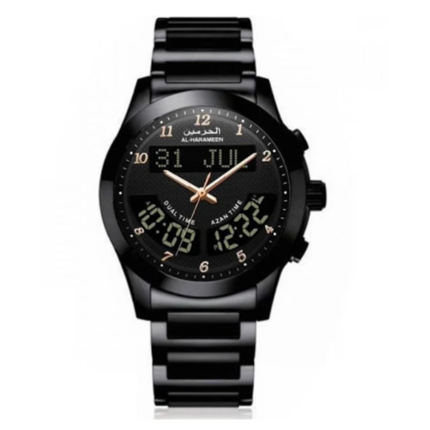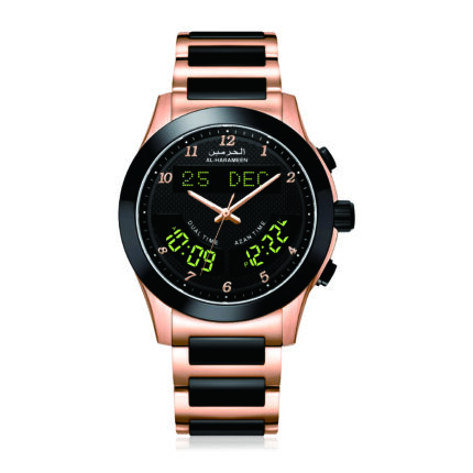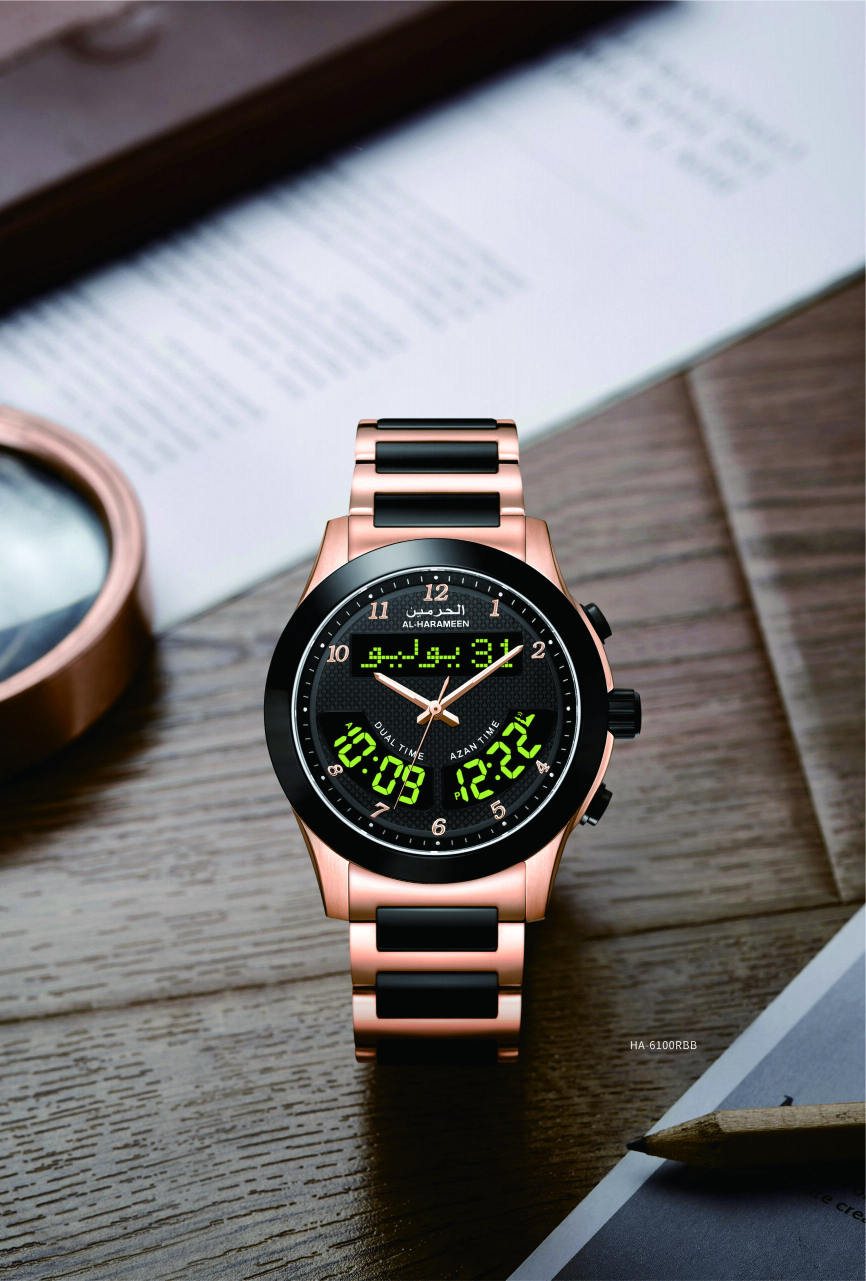 ساعة الحرمين HA.6100 صُممت لتجمع بين الفخامة العملية والتقنيات الإسلامية الذكية مع توقيت مزدوج عقارب ورقمي يمنحك قراءة واضحة للوقت في كل الأوقات.