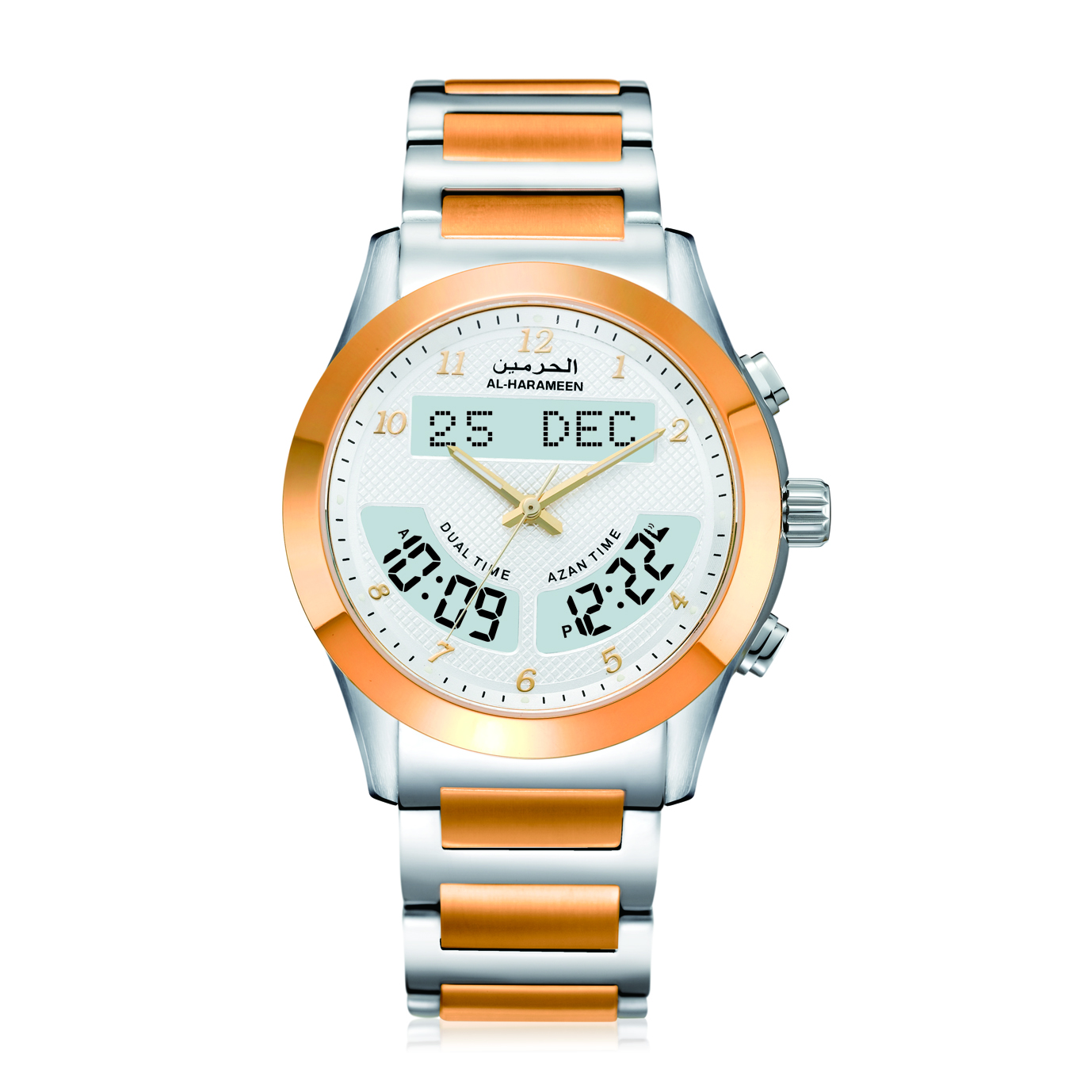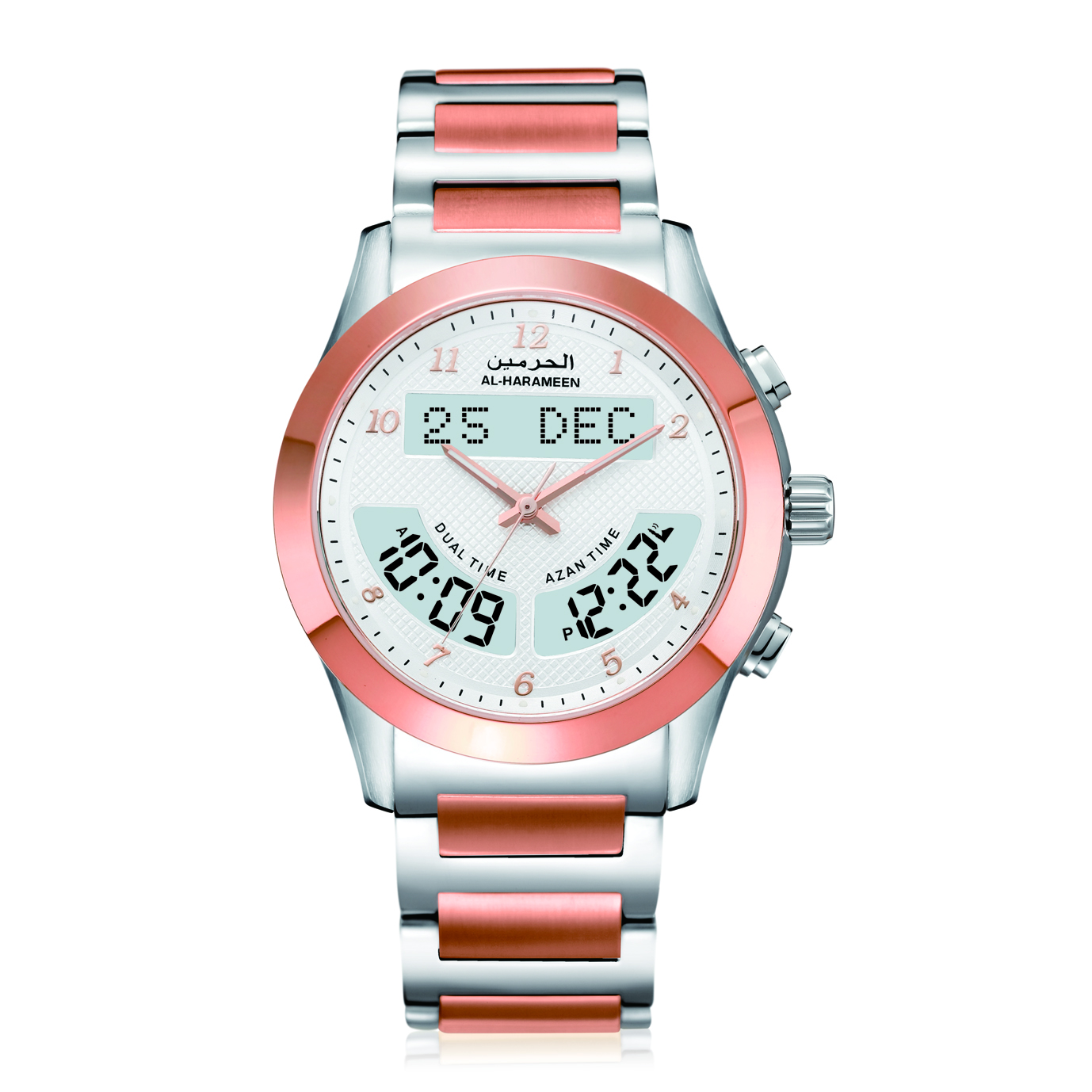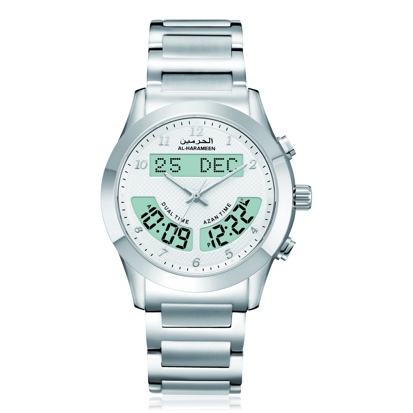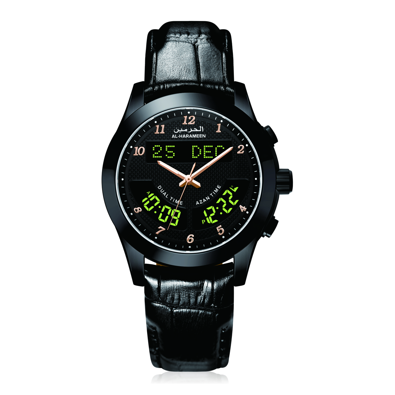 ساعة الحرمين HA.6100 صُممت لتجمع بين الفخامة العملية والتقنيات الإسلامية الذكية مع توقيت مزدوج عقارب ورقمي يمنحك قراءة واضحة للوقت في كل الأوقات.