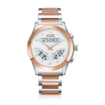الإطار والسوار المصنوعان من استيل فاخر مقاوم للصدأ باللونين الذهبي والفضي اللامع يضفيان لمسة أناقة تناسب الاستخدام اليومي والمناسبات الخاصة.