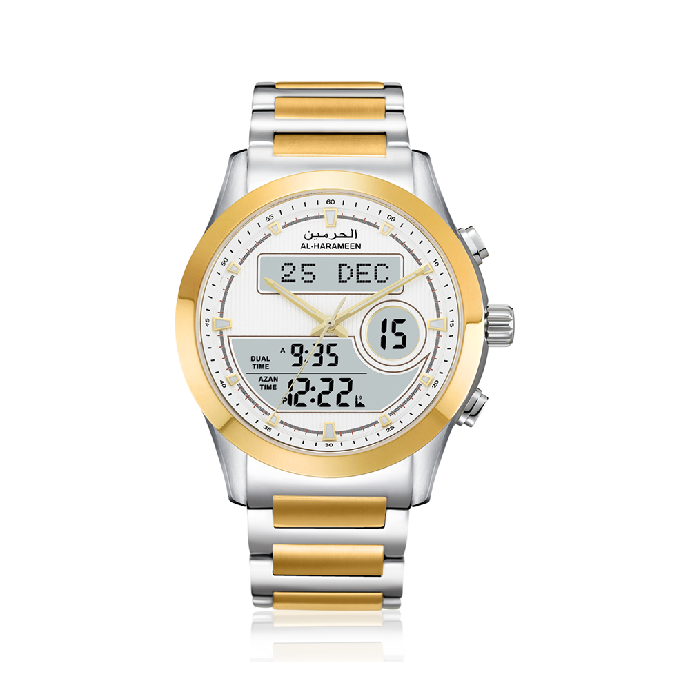 ساعة الحرمين HA.6101 ميجا بين التصميم الفاخر والتقنيات المتقدمة المتقدمة، مع توقيت مزدوج (عقارب ورقمي) يوفّر قراءة الدقيقة ووضحة للوقت في مختلف الظروف. إطار وسواران مصنوع من استيل فاخر مصنوع من الفولاذ المقاوم للصدأ بلمسة زجاجية رائعة بين الذهبي والفضي، لتمنح الساعة حضورًا أنيقًا يناسب الذوق والعصري في آن واحد.