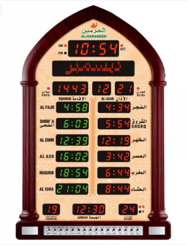 - ضبط ساعات الحائط الكبيرة والصالات والمساجد