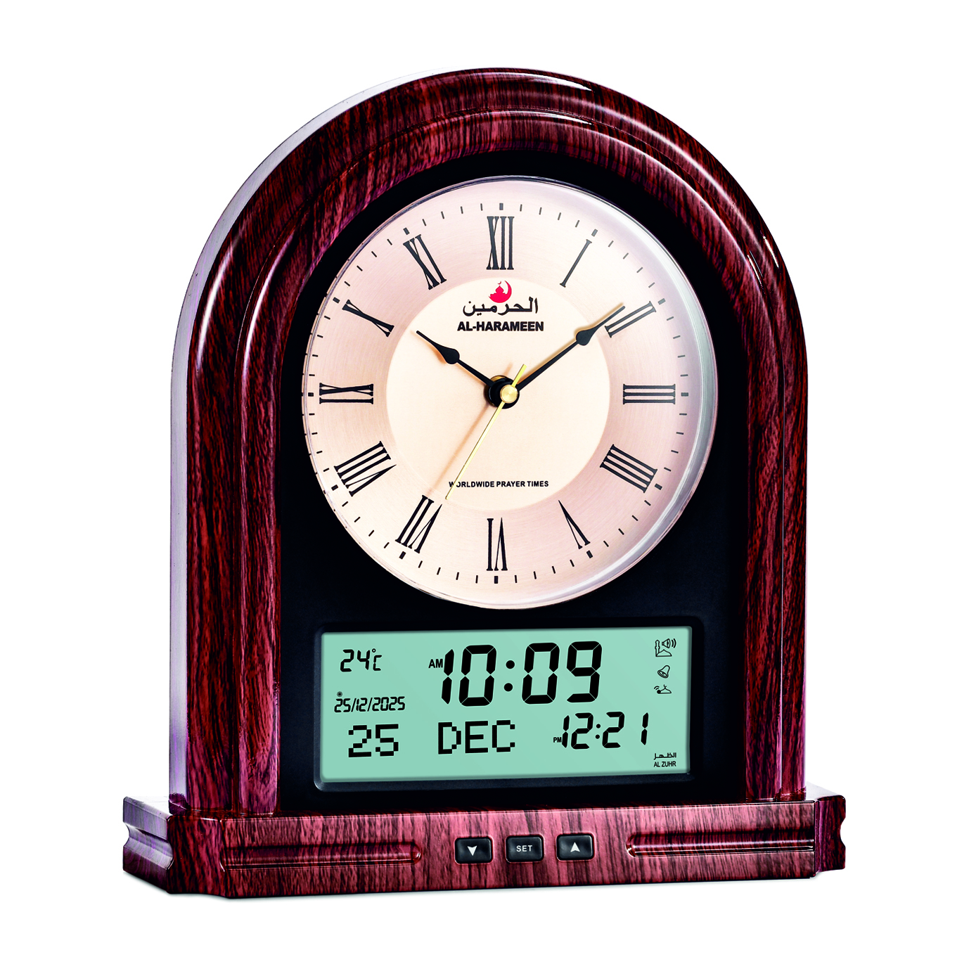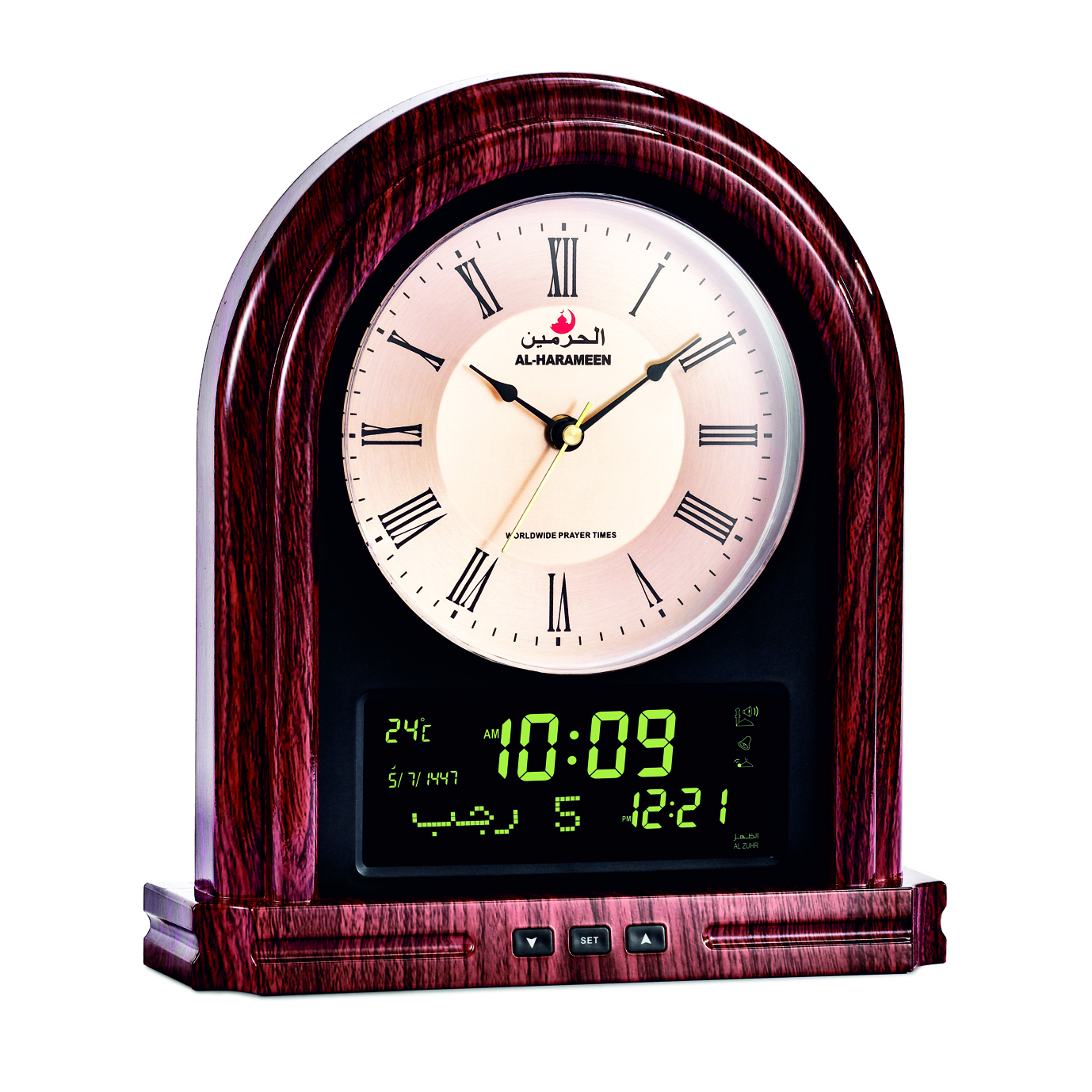 - اسم المنتج: ساعة الحرمين للأذان (مكتبي وحائط)