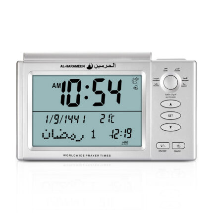 ساعة رقمية للأذان تجمع بين الدقة والوظائف المتعددة، مع أذان كامل للصلوات الخمس وصوتيات مميزة، مثالية للاستخدام في المنزل، المكتب، الصالات، والمساجد.