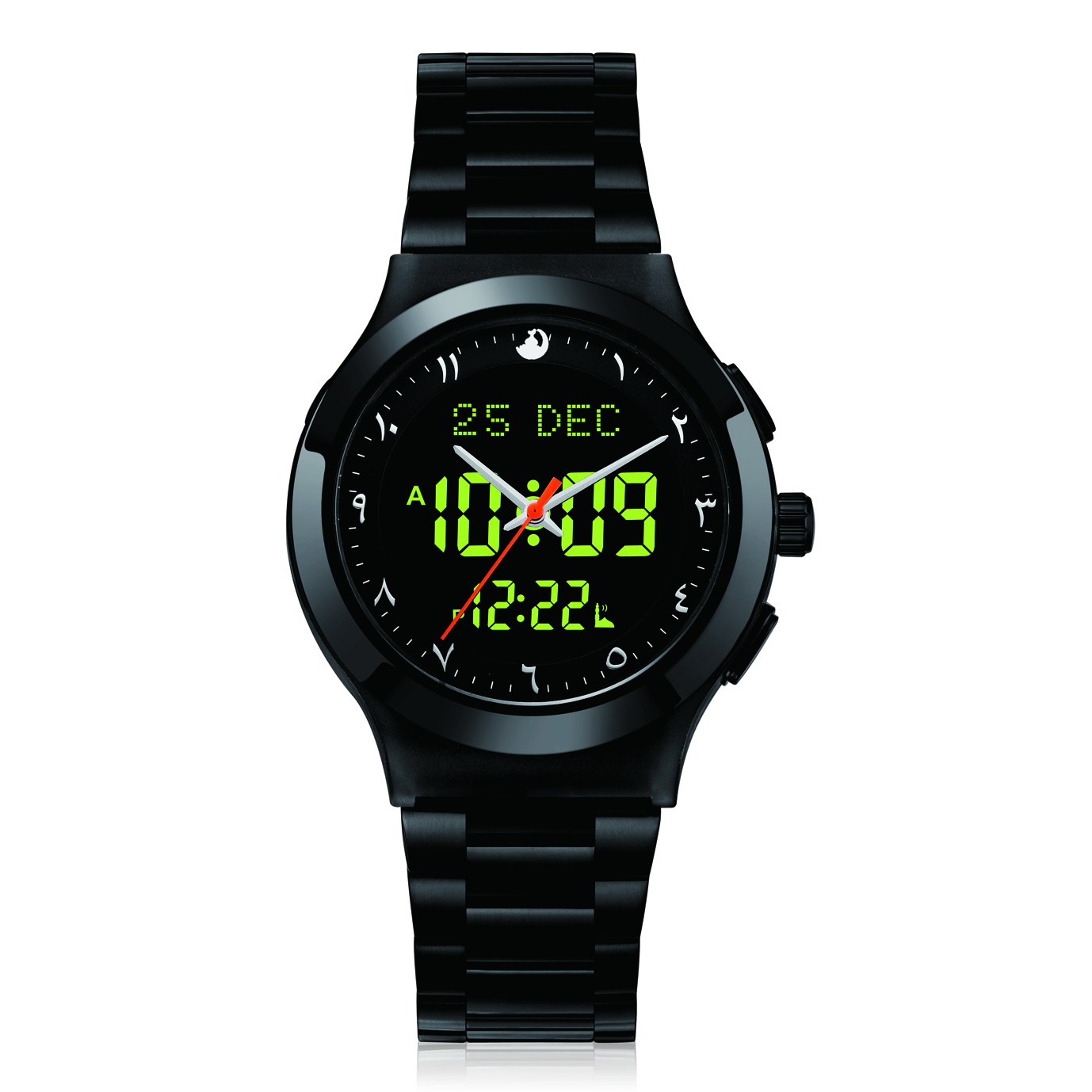 • ساعة تجمع بين الفخامة والدقة… وتخليك دائمًا على اتصال بوقت الصلاة والقبلة أينما كنت.ساعة الحرمين HA.6106 صُممت للرجل العصري اللي يهمه الوقت، والروح، والأناقة في آن واحد. تجمع بين التوقيت الرقمي والعقارب، مع تصميم فاخر بإطار وسوار ستيل مقاوم للصدأ، وتقنيات ذكية تخدم عبادتك في أي مكان حول العالم.