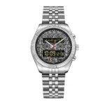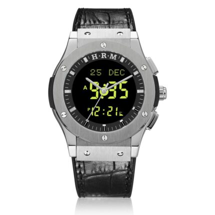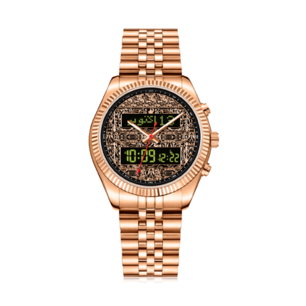 - تصميم رجالي فاخر بتوقيت مزدوج (عقارب + رقمي)