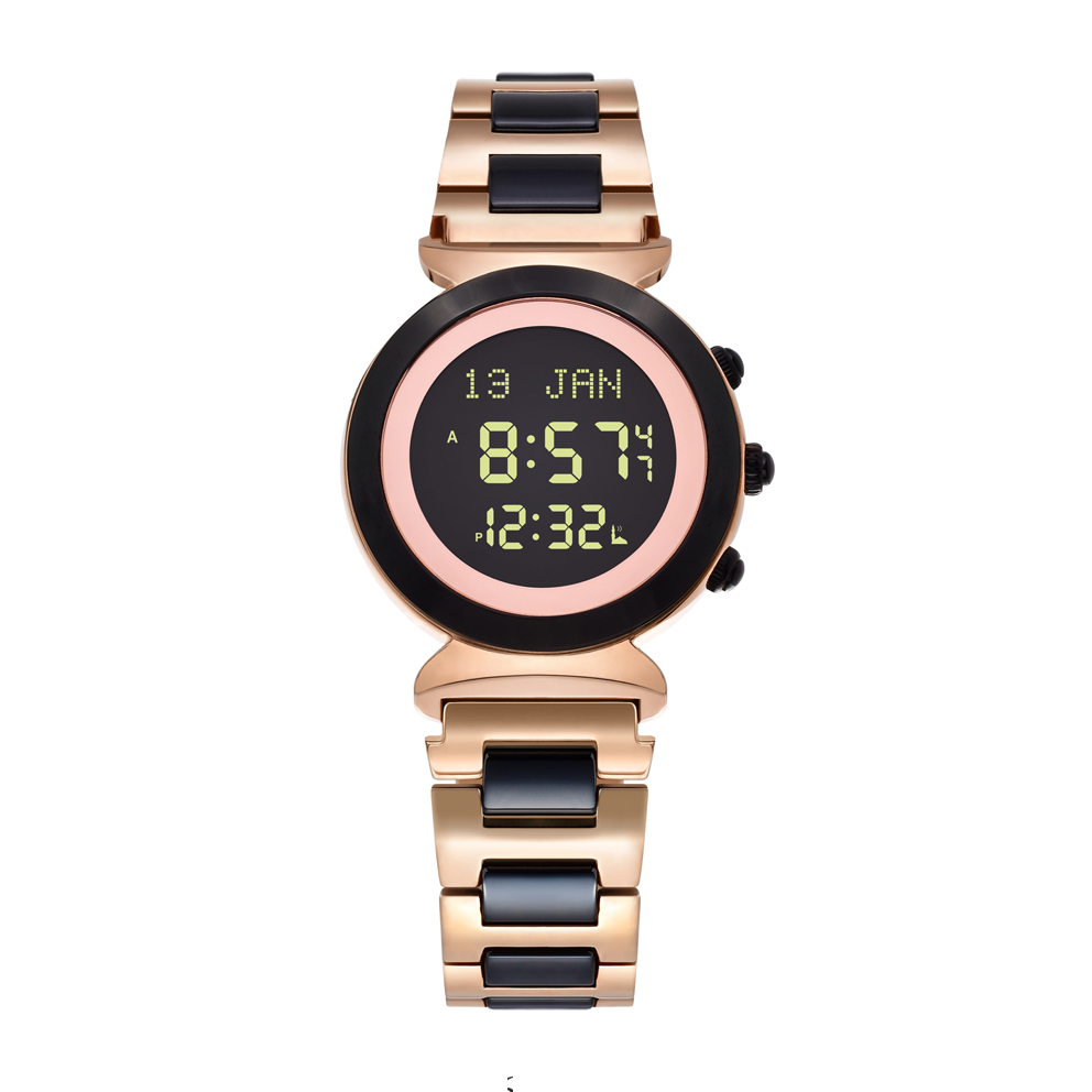- الإطار والسوار: استيل فاخر، مقاوم للصدأ، باللون الذهبي أو الفضي اللامع.
