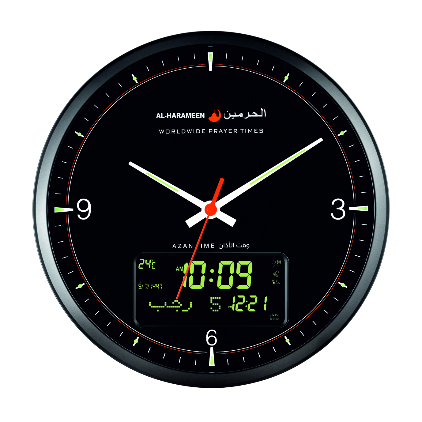 - اسم المنتج: ساعة الحرمين للأذان ( وحائط)